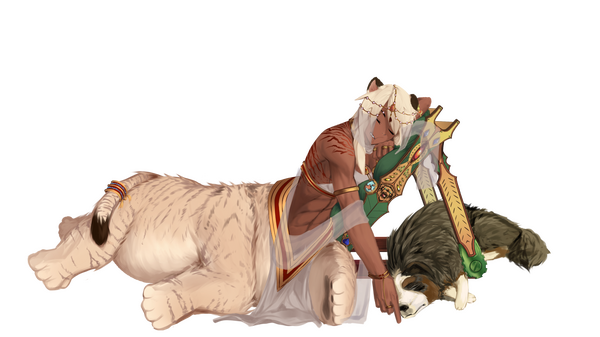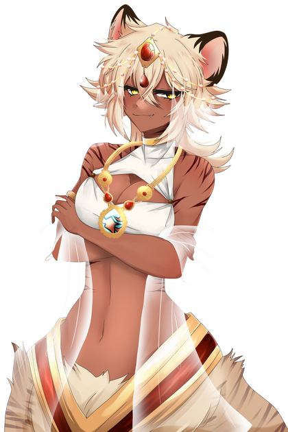 Since birth, Seraphina has had a natural affinity for solar magic. She was gifted at a young age and her efforts had not gone by unnoticed, giving her the chance to become a mentee underneath a well-established shaman.Though it remains as speculation and rumors, there is gossip amongst her old tribe that a jealous individual had cursed her with black magic — in doing so, causing a temporary shift to her affinity from solar into lunar. This shift is so drastic and quick, that it causes a complete change in personality and an altered form — an aggressive variant of Seraphina would emerge during a solar eclipse, when the sun is completely blotted out by the moon.Since her affliction, she has trained herself from day-in to day-out before setting foot outside of her homeland. Though she wished to stay, there was the fear that she would hurt those she loved and cherished back home.Over the years, she had eventually founded The Sunlit Ward, a safe haven for those to rest at and recover. She has also wandered into "The Dead Zones", which is lands blighted by dark magic to the point of causing rot and decay — venturing out in rescue missions to save whomever she can from those areas.Though she wishes to spread healing to as many that she can reach, Seraphina has also been desperately in search of a cure in secret during her adventures.